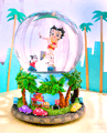 今手が離せないの。エージェントからの電話も、待ってもらってね。もうちょっとだけゆっくりしてもイイでしょ。ねえ、ここにシャンパン持って来てもらえて?。‥バブルバスのフィギュアってけっこう目にしますが、その中でもスノーグローブ系はとても相性がいいんです。だけど、おさるのジョージやパディントンにこのセリフは、言えません。やっぱりベティかジュリア・ロバーツ(プリティ・ウーマンの‥)でないとね!。子供の頃、こういう風呂に入ってみたかったァと、思いを込めて振りましょう。ピンクのバスタブのグローブに、シャボンのような光の粉が舞って気持ちをなだめてくれることでしょう。高さ10cm、グローブ直径65mm。こちらは元々、ガラス小傷が良く見られる商品です。 |