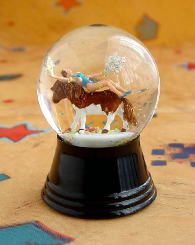 細やかさといかにも一点一点手でひねり出したような素朴さとが同居している人形たち。ご紹介している写真は1つのタイトルの中のあくまでたった1つだけしかないスノーグローブです。どうか参考画像とお考えください。どれもみんなコスチュームの色や形、ポーズ、持ち物や人物の組み合わせが違います。ですから一度はまったら千差万別のコレクション・ワールドの楽しみをたっぷり楽しむことが出来ます。集めるほどにあなたの家だけのサーカス団が出来上がります。水の中には紙吹雪のようなカラーフォルムが舞い上がるのも大きな魅力になっています。