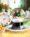 お祝いの日のためのスノーグローブ。つめたーく冷えたドリンクを雪と一緒に封じこめた粋な趣向。今では、コーラのグローブなどにこのヴァリエーションが使われるほどトラディッショナルなモチーフ。でもガラスのグローブにはシャンパンが一番ふさわしいです。PERZY の雪がさらに華やかにさせてくれます。トップハットのつばには真っ赤なてんとう虫、これは幸運の印なんです。嬉しい事の記念日やプレゼントに!。 大きさは高さ12cm、グローブの直径は80mmです。